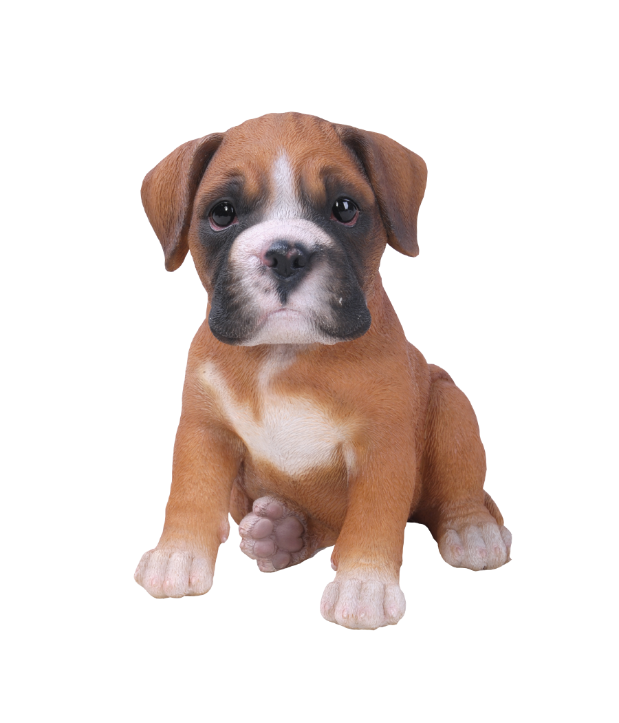 Ομοίωμα από Μπόξερ (Boxer), σκυλάκι, καφέ-άσπρο, καθιστό, από ρητίνη.