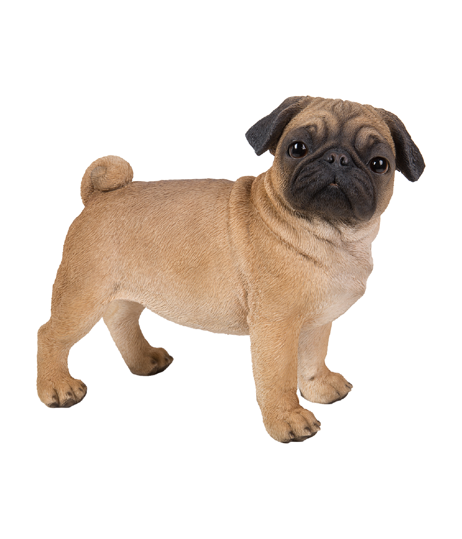 Ομοίωμα από σκυλάκι ράτσας Πάγκ (Pug), όρθιο, σε καφέ χρώμα, από ρητίνη.