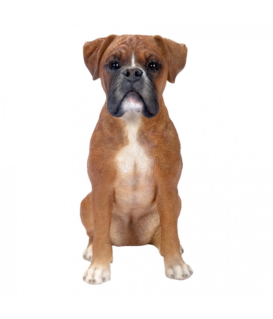 Ομοίωμα σκύλου ράτσας Μπόξερ (Boxer), σε καφέ-άσπρο χρώμα, από ρητίνη.
