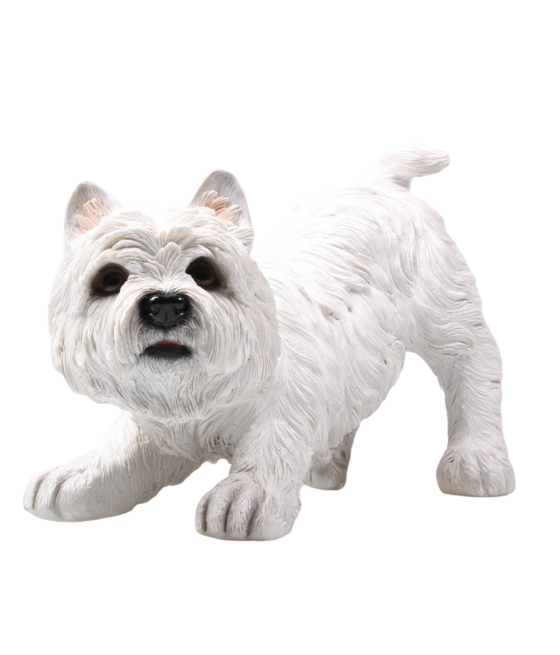 Γουέστι (West Highland Terrier) σκυλάκι, σε στάση παιχνιδιού, από ρητίνη.