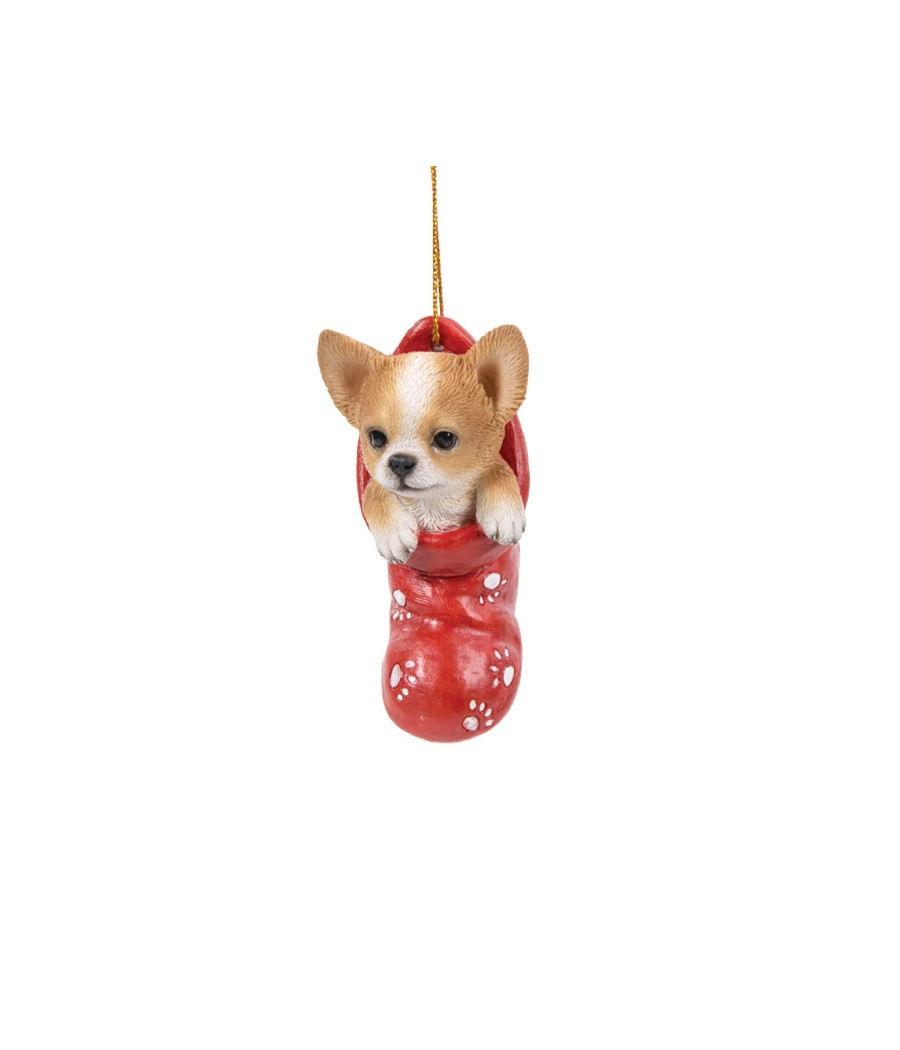 Τσιουάουα (Chihuahua) σκυλάκι, μέσα σε κάλτσα, κρεμαστό, από ρητίνη.